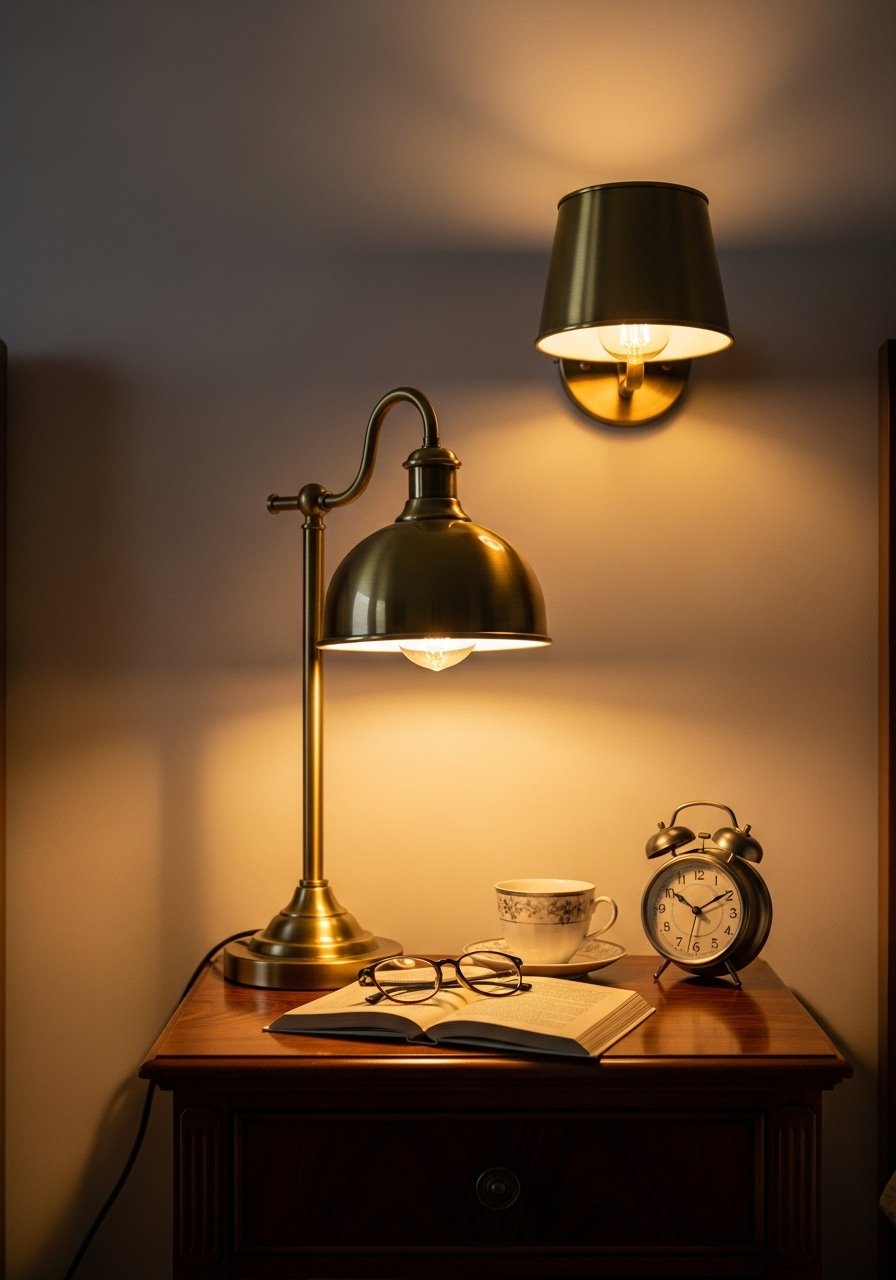 I used three light sources: overhead dimmable, a bedside brass lamp, and a small directional sconce. Layering light lets you control mood. Swap to warm 2700K LED Edison bulbs for a soft glow (LED Edison bulbs). Mistake: only using bright overhead light — it flattens texture and makes the room feel clinical.