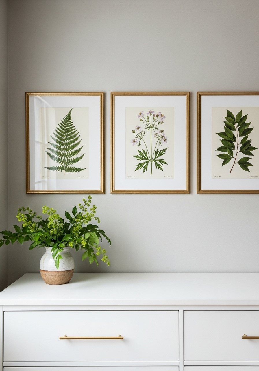I swapped an oversized painting for three botanical prints in matching brass frames. It reads curated, not cluttered. I used vintage brass picture frames. Styling tip: mat all prints in the same color for cohesion. Mistake: hanging frames at different heights—aim for a centered midline at eye level.