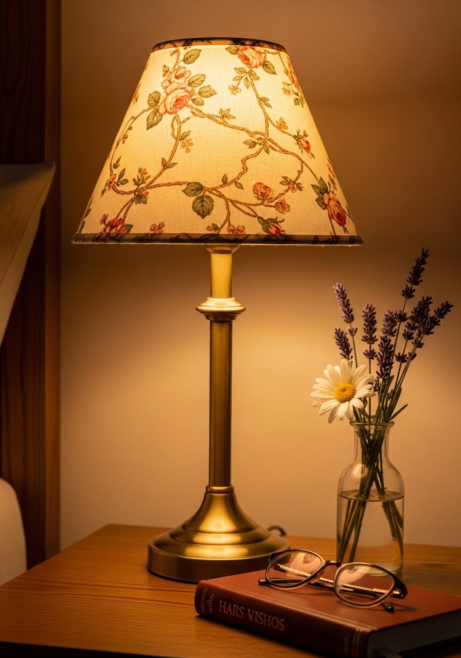 I swapped plain shades for floral fabric shades to soften bedside light. Pair with warm LED Edison bulbs. The glow makes the floral print feel cozy. Mistake: using cool-white bulbs—they flatten colors.