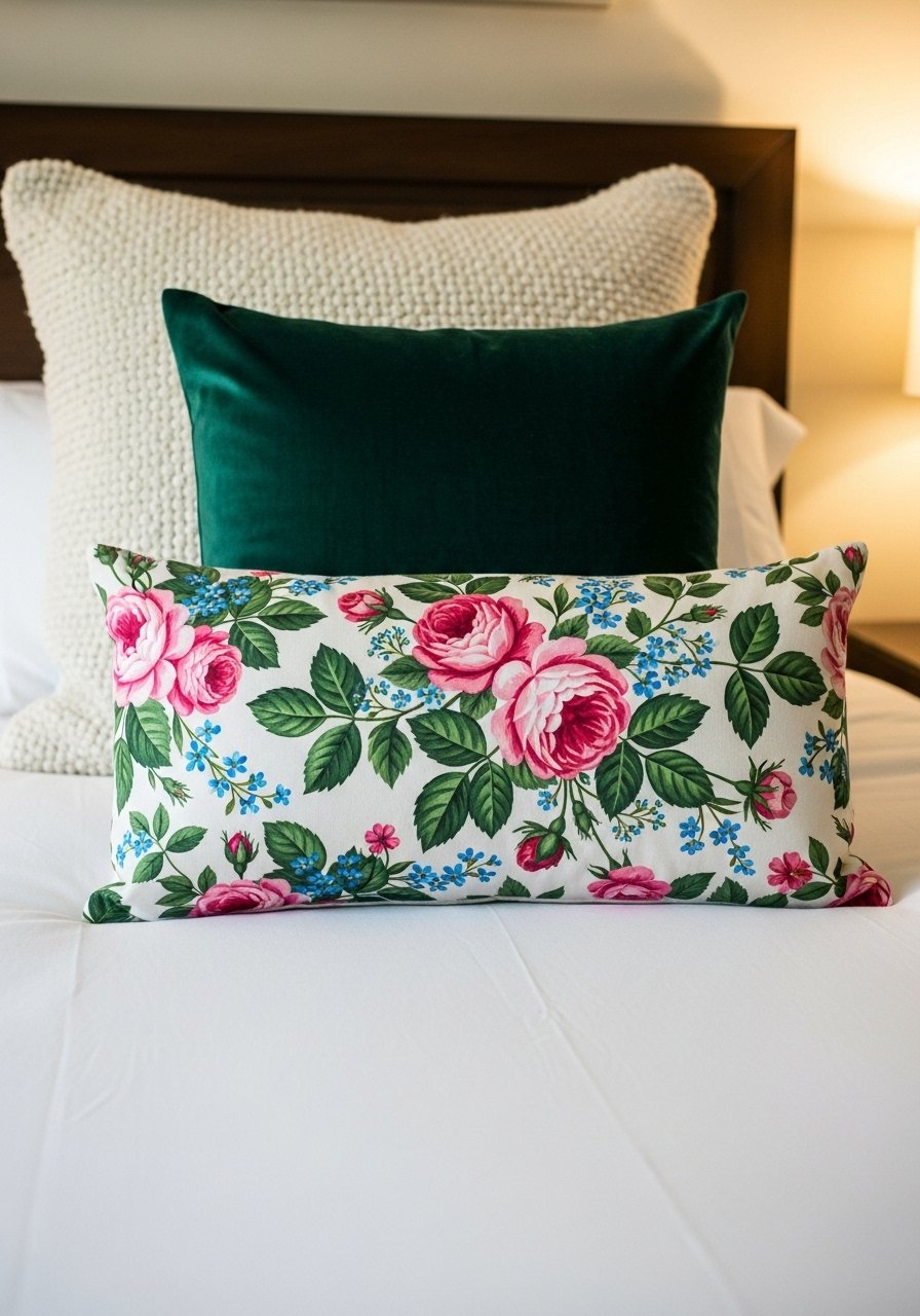 Pillows are the easiest swap. I mix one floral lumbar with solids in velvet and linen. I use odd numbers: three or five pillows. I sourced covers and used 22-inch euro pillows for structure. Mistake: overstuffing—pillows should look lived-in.