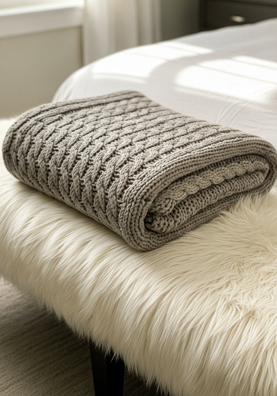 - Buy throws seasonally: I swap mine every 3 months. Chunky knit throw blanket is ~$40.