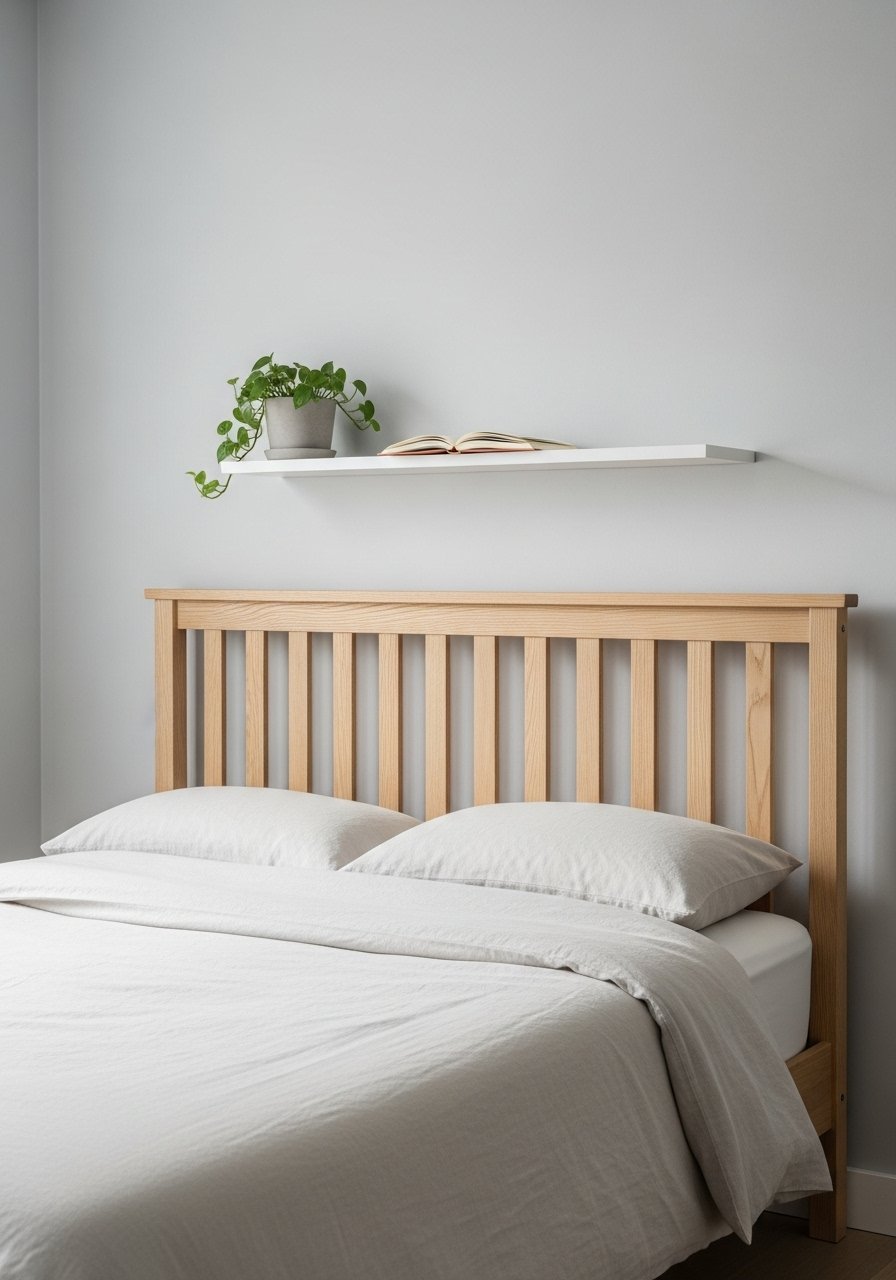 I picked a pale wood headboard and floating shelves white oak for display. Add a round jute rug 6 foot to warm floors. The result feels airy and organized. Real-life note: keep 20–30% of surfaces clear; true minimalism needs negative space. Common error: choosing white furniture in a north-facing room—opt for warm wood instead.
