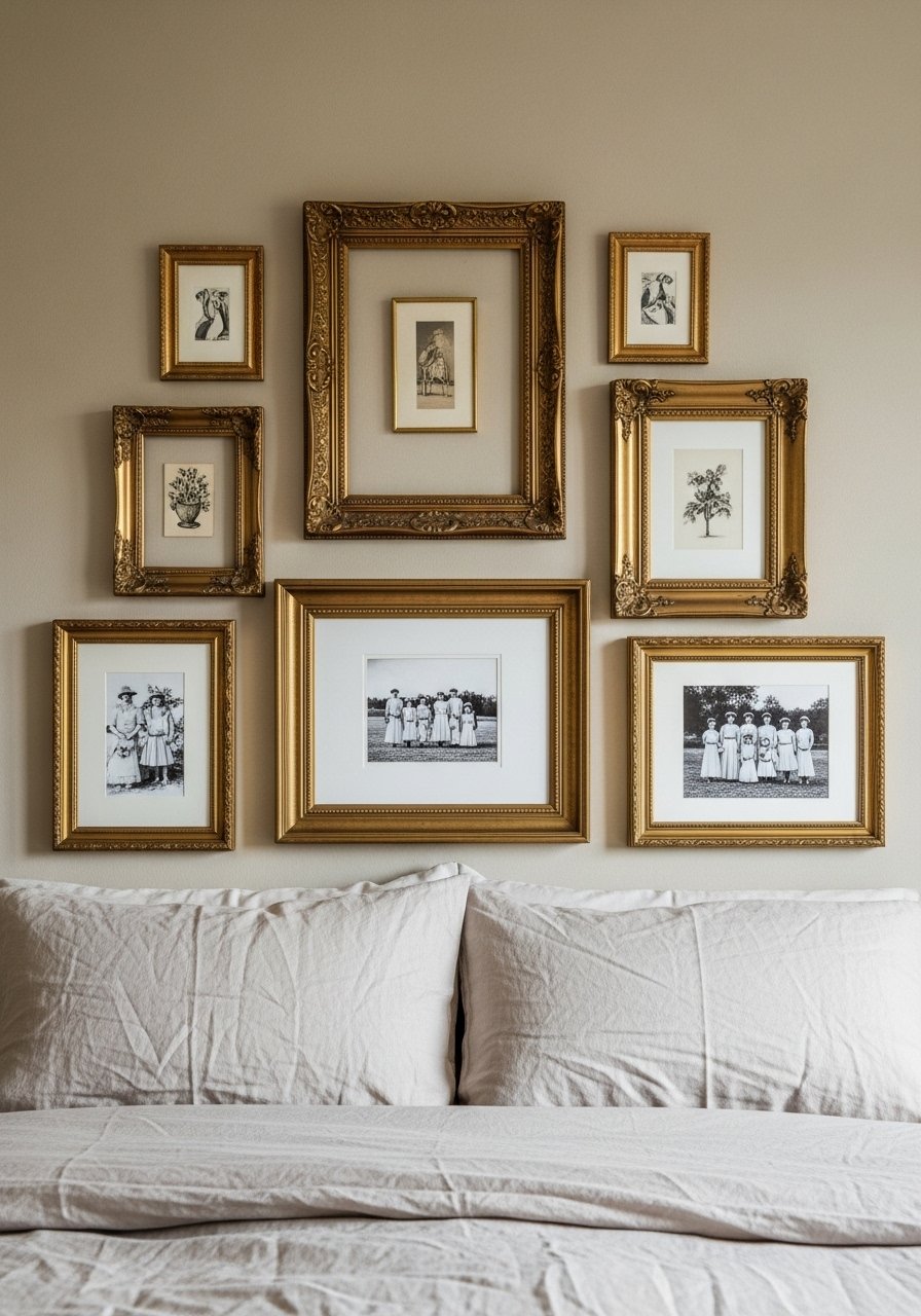 I swapped a headboard for a tight gallery of vintage brass picture frames 8×10 set. Use odd numbers and keep matting consistent. It reads intentional and adds personality. Mistake: spacing frames too far apart—keep them within a 2:1 width of the bed.