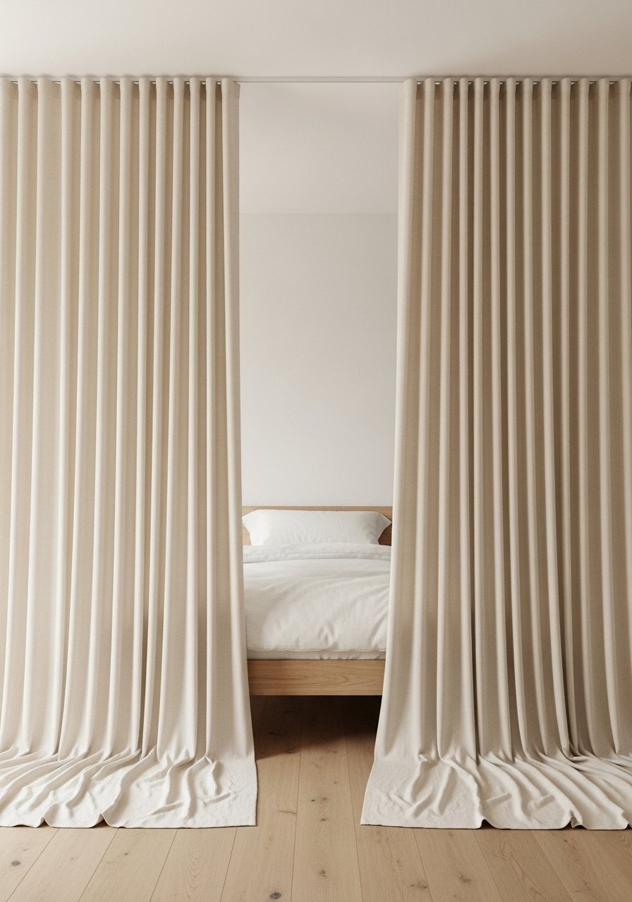 This list leans modern, boho, and Scandinavian vibes. Budgets range from under $50 to splurges around $150. These looks work best in bedrooms, small master suites, and guest rooms. Trend note: 2025 styling favors tactile textiles, mixed metals, and floor-to-ceiling treatments (Pinterest Trends; Houzz reports rising interest in cozy, textured bedrooms).