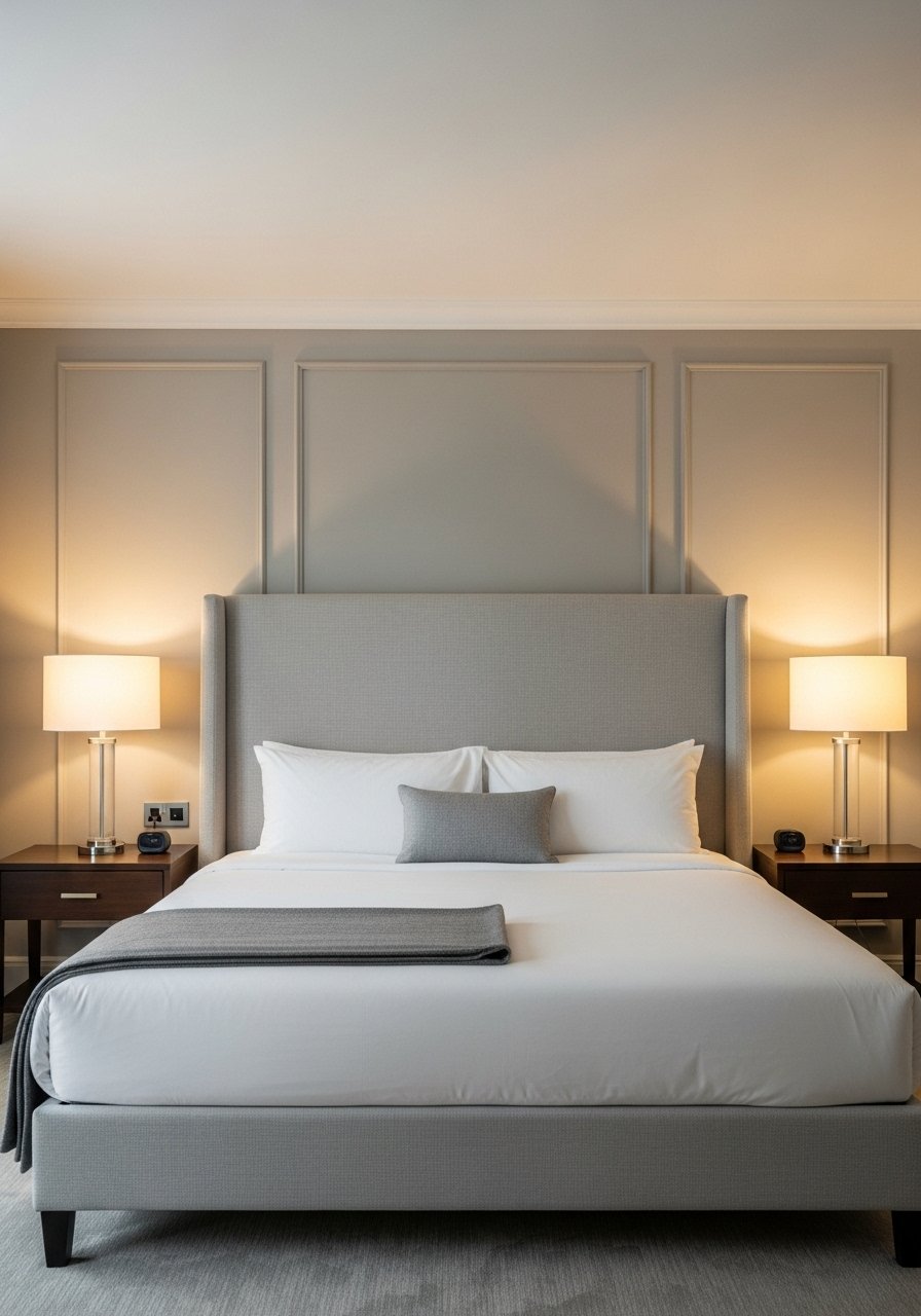 I swapped my flat headboard for an upholstered panel to anchor the room. Pair with matching nightstands and identical lamps for a hotel feel. I used adjustable bedside swing arm lamp brass. Symmetry reads calm and collected. Real-life tip: if you have different nightstands, visually match with lamps and rug.