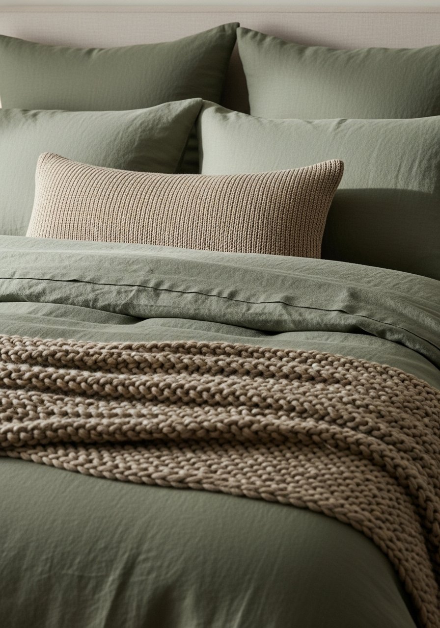 - Linen duvet cover in sage green, queen (~$70–110)