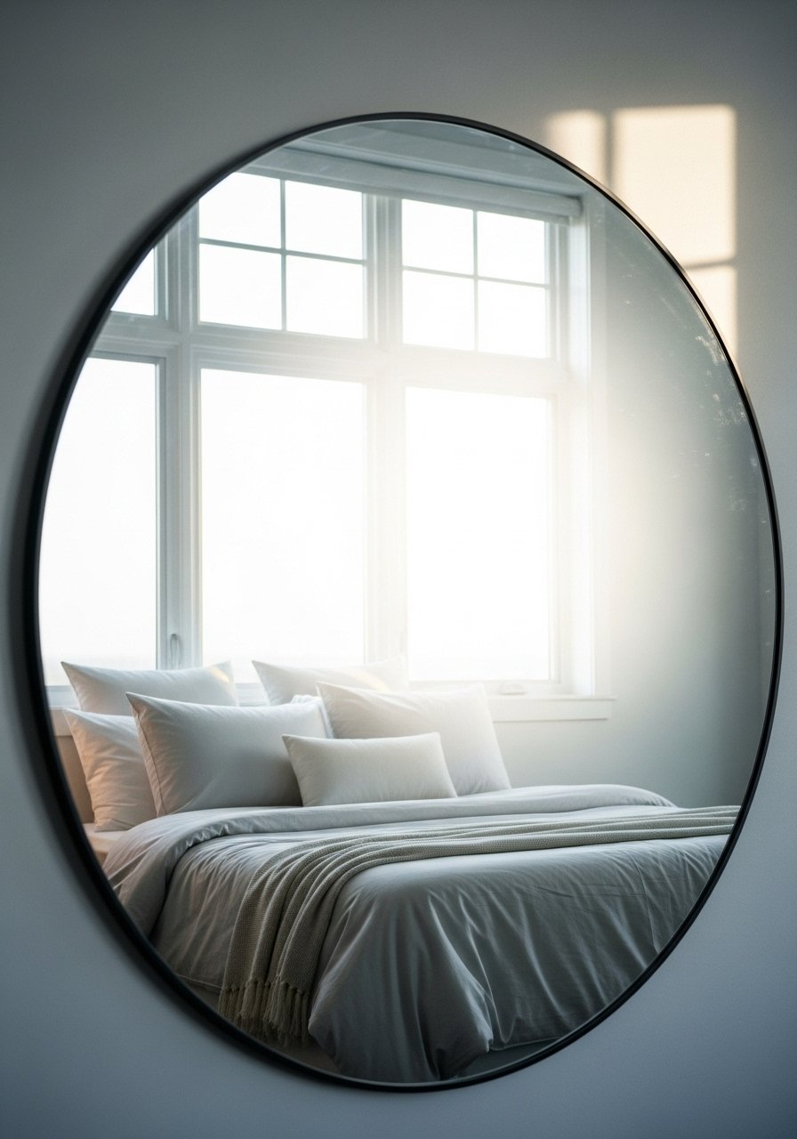 I leaned a 36-inch round mirror against the wall across from my window. It doubled natural light and made the room feel deeper. Mirrors also work as art. Tip: layer a small shelf beneath for plants. Common mistake: hanging a mirror too high—keep the center at eye level. Brands: CB2 has good modern styles; IKEA for budget options.