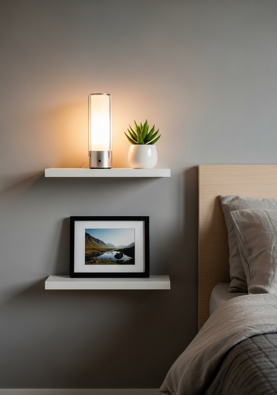 Built-In-Look Floating Shelves for Nightstand Space