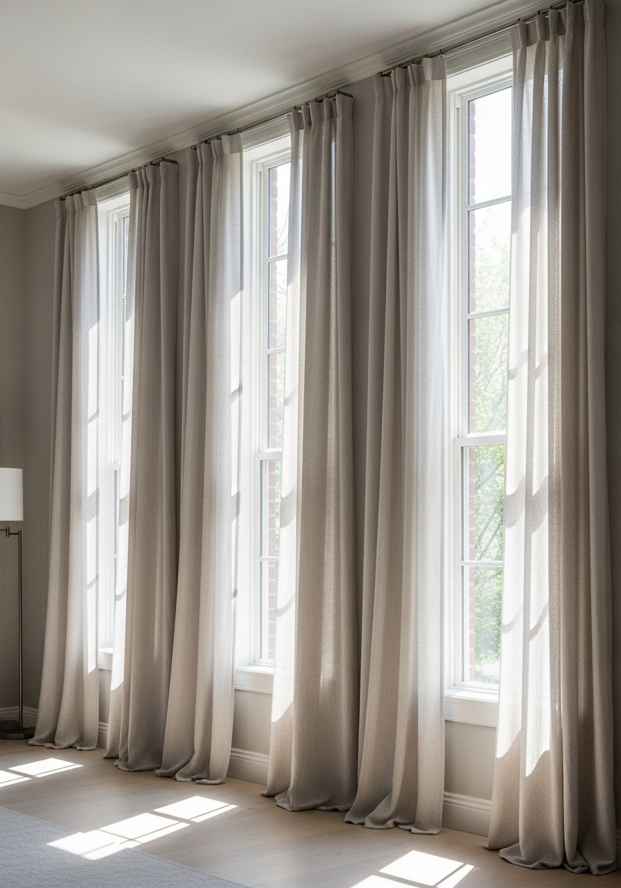 Hanging 96-inch linen curtains high creates instant height. I always mount the rod within 4 inches of the ceiling and let curtains kiss the floor. Avoid panels that stop mid-wall; they look amateur.